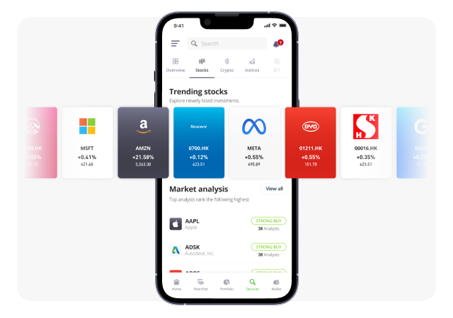 从科技到医疗,从纽约到香港,eToro 使交易者可以实时投资全球顶级交易所的股票。